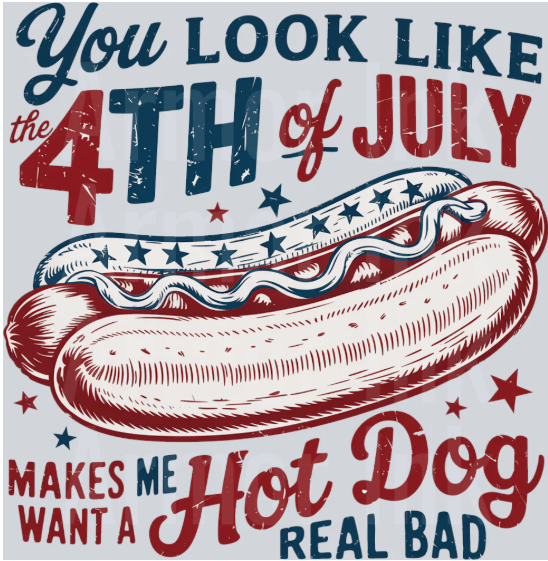 You Look Like the 4th of July Makes Me Want a Hot Dog Real Bad design combines festive charm with playful attitude, making it perfect for seasonal events, parties, or merchandise collections. It showcases how creativity doesn’t have to be complicated to be effective, a strong concept, paired with quality printing materials, makes for wearable art that people enjoy wearing again and again.
